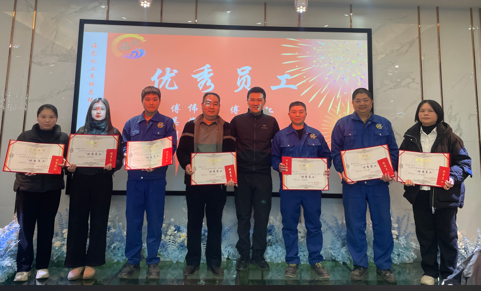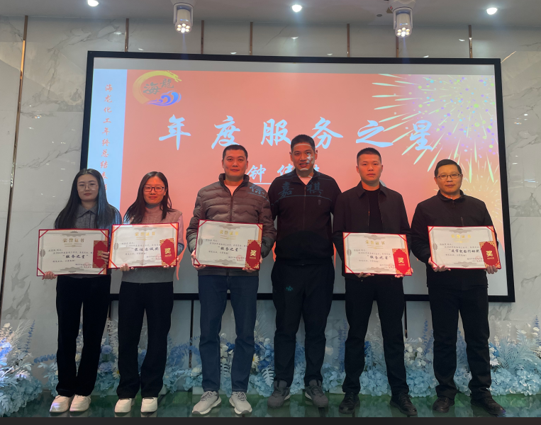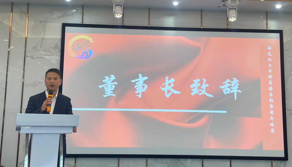 祥龍辭歲福澤厚,靈蛇納祥好運來。海龍化工2024年終總結(jié)表彰大會暨團年晚宴于1月14日宴慶樓酒店盛大召開。會議旨在回顧公司的發(fā)展歷程及全面總結(jié)2024年工作成果,并為2024年取得優(yōu)異成績和為公司作出突出貢獻的管理人員、優(yōu)秀員工、優(yōu)秀團隊等給予了表彰和頒獎。