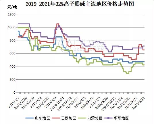 截止5月19日,國內(nèi)主流地區(qū)液堿市場參考價(jià)格如下: