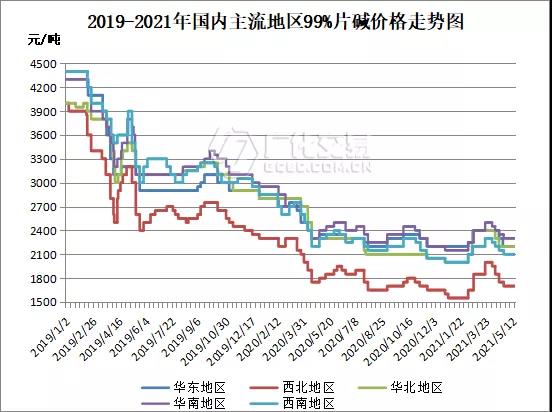 截止5月19日,國內(nèi)主流地區(qū)片堿市場參考價(jià)格如下: